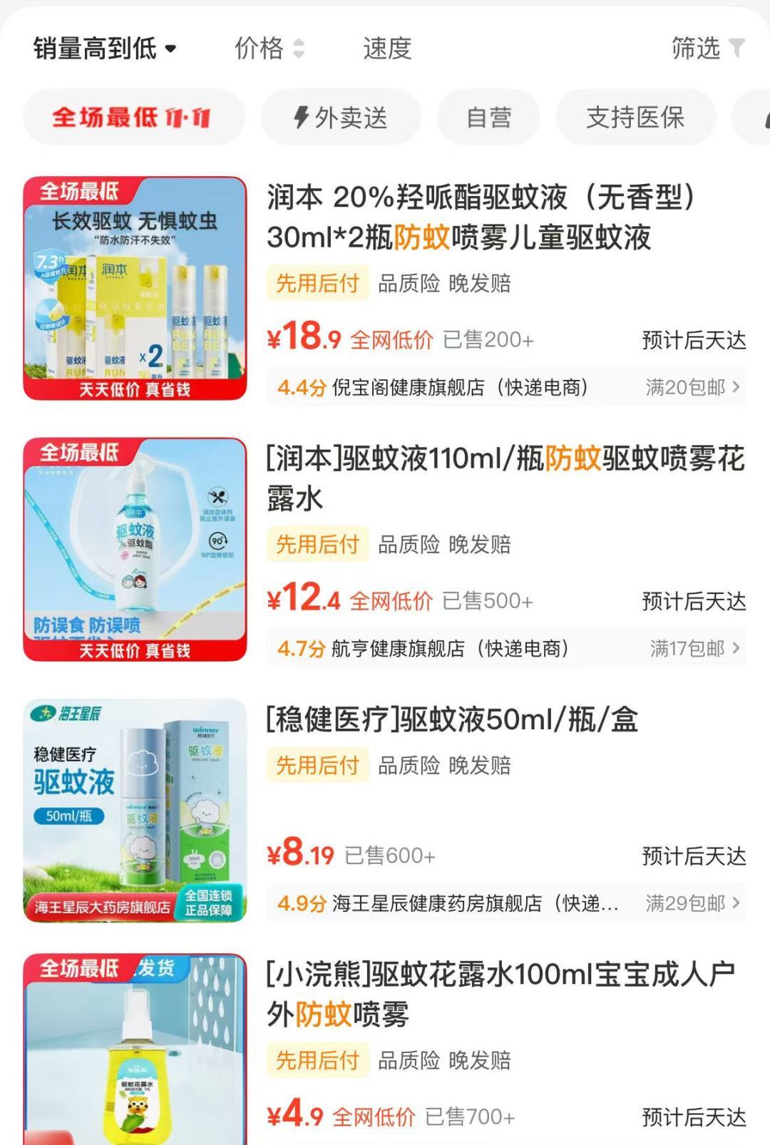美团医药健康即时零售业务部总经理王丹此前表示:为响应用户需求,平台上有200多种驱蚊用品在售,包括花露水、驱蚊液、驱蚊喷雾等。同时还可以为用户提供专业科普、在线问诊咨询及24小时送药到家的一站式健康服务。目前整体供给充足,用户可按需选购。